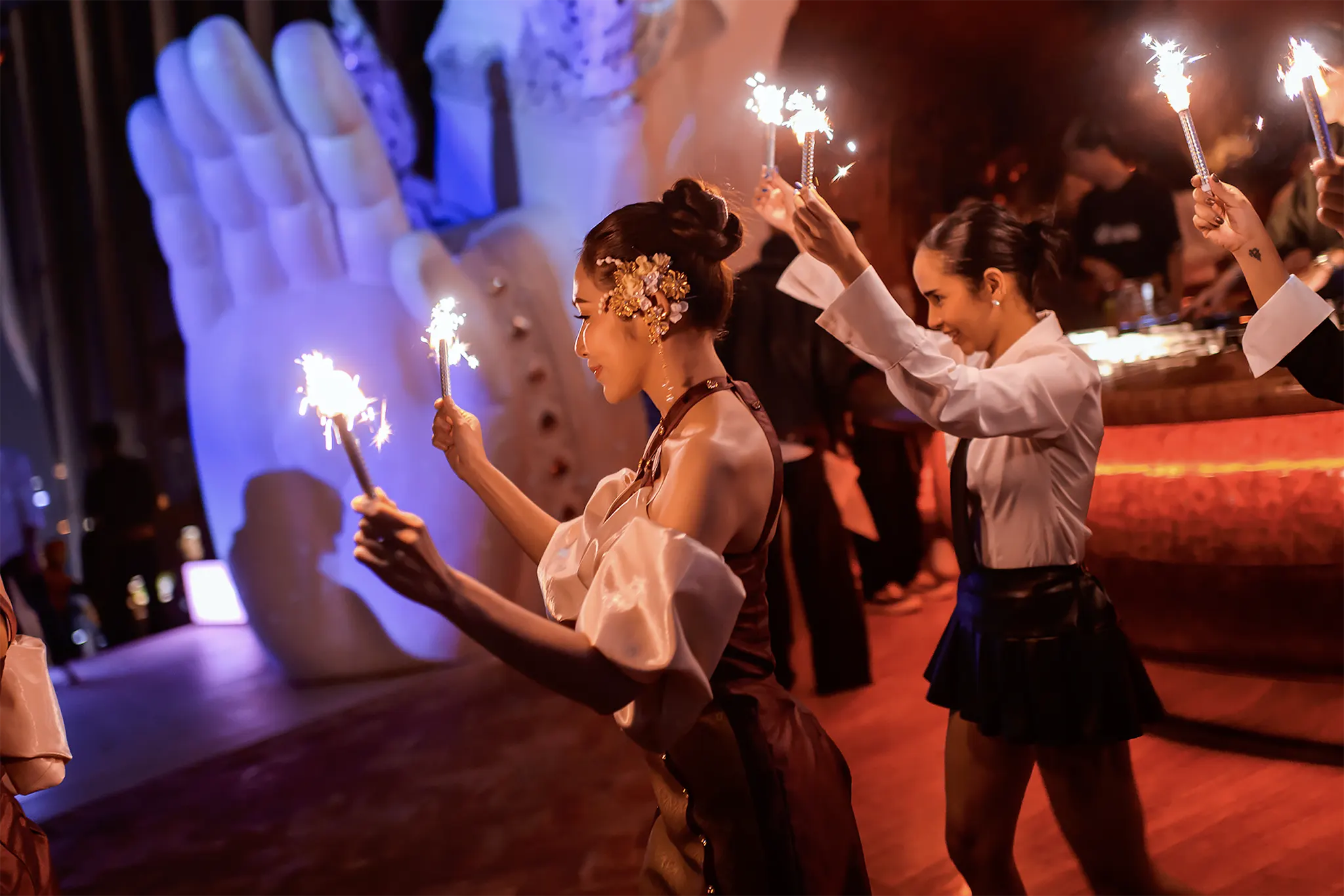Akara Sky Hanuman offers a unique blend of panoramic city views and rich Thai cultural experiences. As the world’s highest Thai-inspired rooftop venue, it immerses visitors in a multi-sensory journey featuring traditional performances like Khon dance and Muay Thai, alongside modern DJ sets, all set beneath a grand Hanuman sculpture. Guests can savor authentic Thai cuisine and signature cocktails while enjoying the 360-degree views of Bangkok’s skyline, making it a must-visit destination for those seeking a memorable evening above the city.