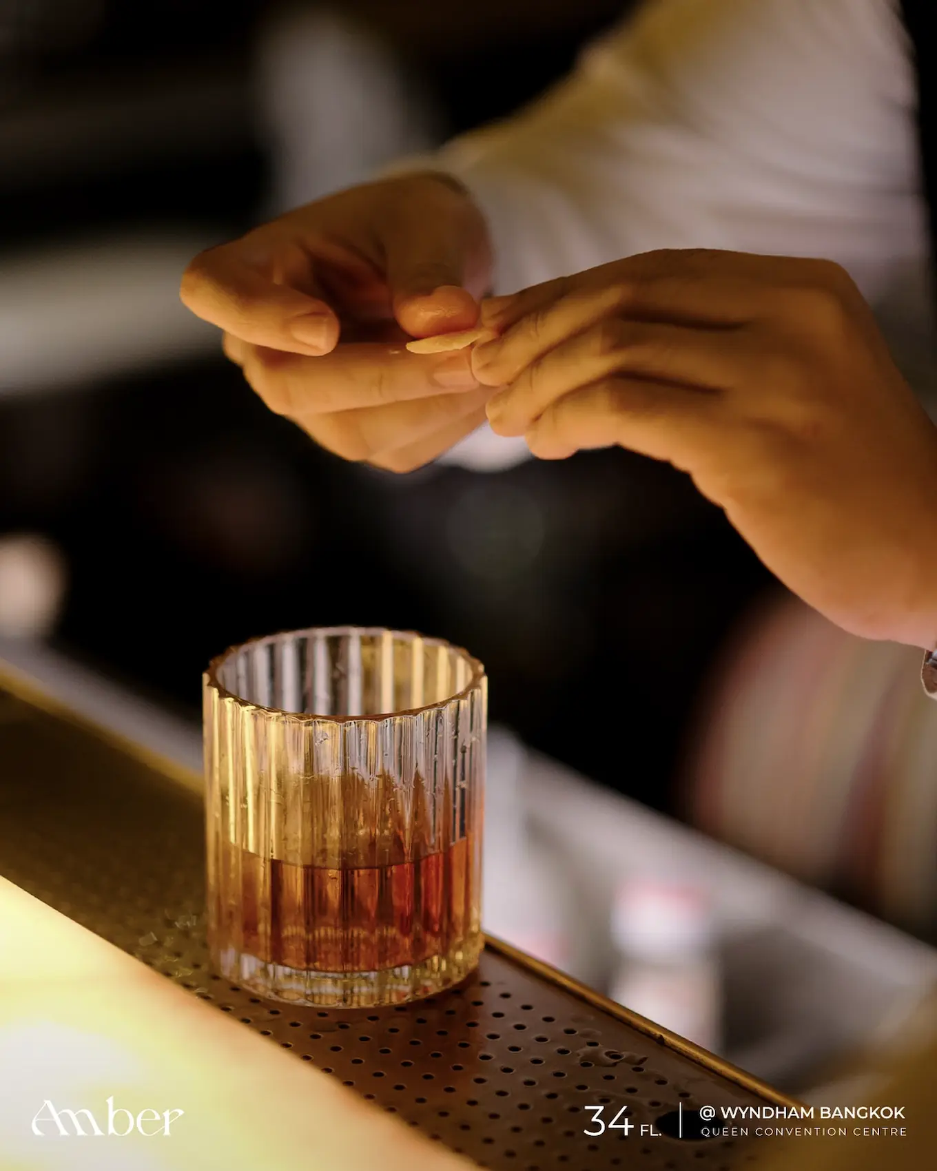 Amber Bar is a rooftop lounge on the 34th floor of the Wyndham Bangkok Queen Convention Centre, steps from MRT Queen Sirikit. It’s perfect for golden-hour views over the city and Benjakitti Park, a relaxed date night, or a quiet drink after work. Expect signature cocktails, live-DJ, and a warm, modern design.