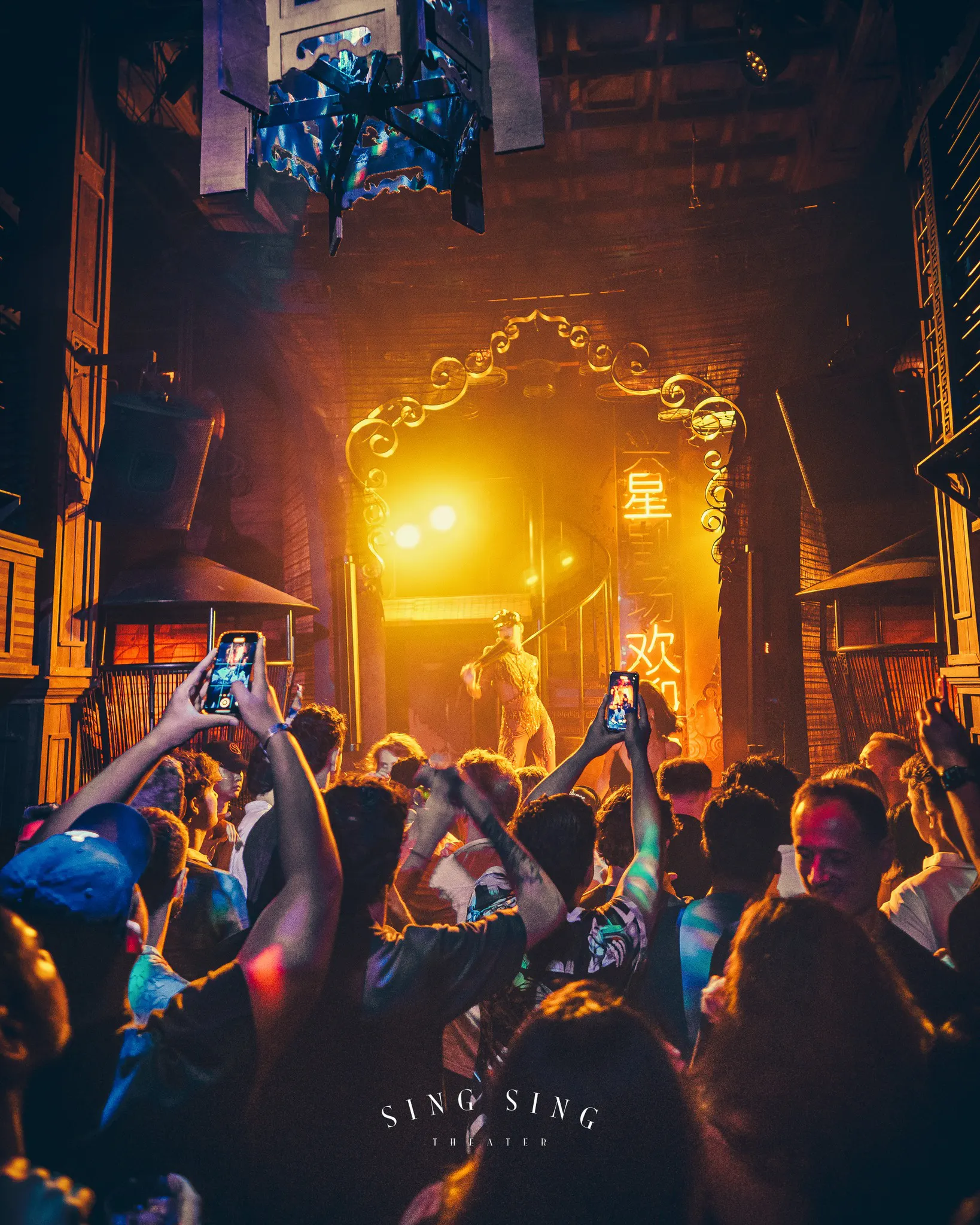 Sing Sing Theater is a sultry, 1930s-Shanghai–inspired playground by designer Ashley Sutton where crimson lanterns, birdcage booths, and tiered balconies wrap a central stage. The vibe blends nightclub and immersive theater: DJs push house and hip-hop (on certain nights), while dancers and performers add to the ambience. Expect premium cocktails, tight production, and a stylish crowd near Thonglor/Phrom Phong—perfect for a late-night rendezvous at a classic Bangkok venue.